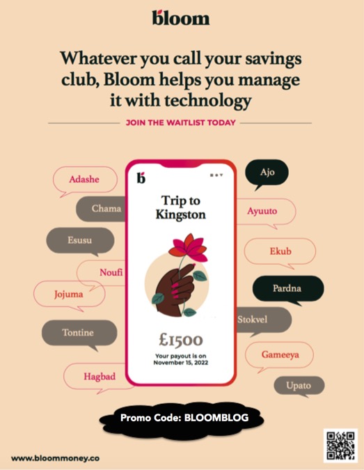 How many of us have parents or aunties and uncles that participate in a rotating ‘contributions’ circle on a fortnightly or monthly basis? This cultural practice is not just practiced in all African and Caribbean countries but in diaspora households across the Europe and here in the UK. It is called ‘Dashi’ in Mali, ‘Likelemba’ in DRC Congo, ‘Djangui’ in Cameroon, ‘Obilimba’ in Kenya or ‘Stokvel’ in South Africa. If I add to that ‘Hagbad’ in Somali, ‘Gameeya’ in Arabic, ‘Esusu’ in Igbo and ‘Eqqub’ in Ethiopia; you get the point. Bloom Money is a savings club app designed to help growing UK communities thrive by using technology to champion community, safety, and convenience — helping you save together for what matters most. By seeking to address the problems of a lack of rewards, security, trust many participating savings circles members have ; Bloom’s secure ‘Bloom Circles’ app brings security, formalisation and rewards to your savings circles in your pocket. Bloom Circles will run on your phone and let you invite between five and 10 trusted people to join your digital circle, setting a sum to save up to £300. Payments will be taken automatically from the debit cards of those who join.